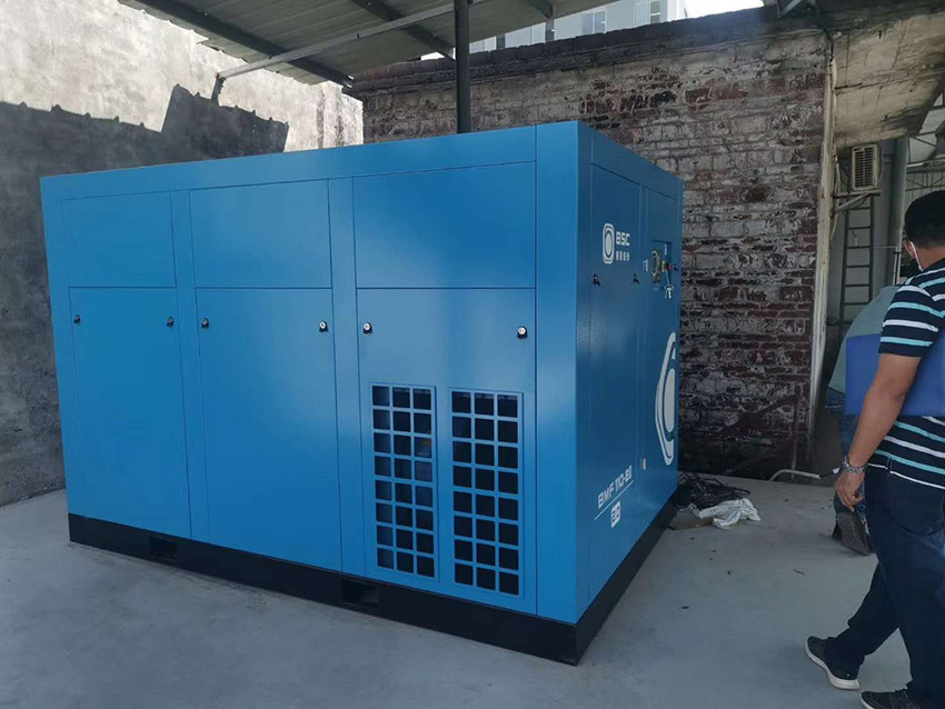2.在收到客戶的空壓機(jī)需求后,廣州中天立即安排工作人員到現(xiàn)場(chǎng)視察情況,了解到佛山華龍公司平時(shí)使用空壓機(jī)時(shí),用氣有點(diǎn)波動(dòng),而原來(lái)110KW,20m3/min的空壓設(shè)備剛好夠用。但是,當(dāng)用氣大時(shí),如果其他地方用氣,會(huì)造成氣不穩(wěn)或氣壓不夠,從而影響產(chǎn)品成型。
